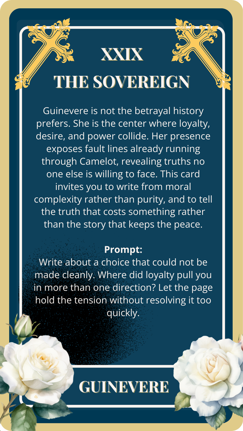 Writing with Guinevere means refusing to outsource responsibility to fate or villainy. It means standing inside the decision and allowing its weight to be felt.